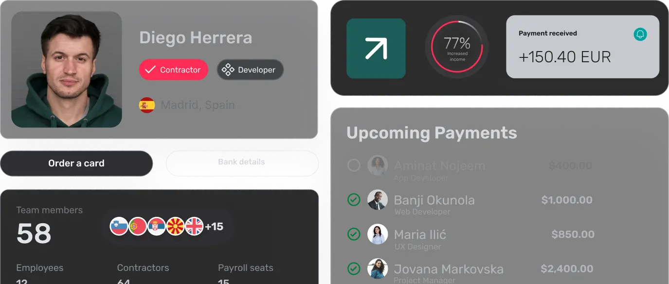 Pay freelancers, project workers, or cross-border teams with a single, compliant solution that keeps everything connected.